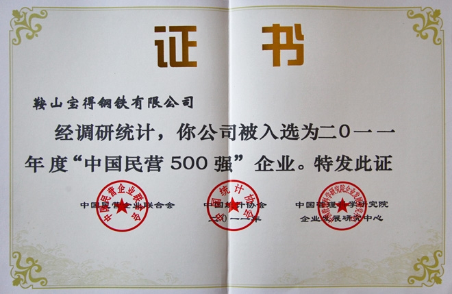 ●2011年中國民營企業(yè)500強。